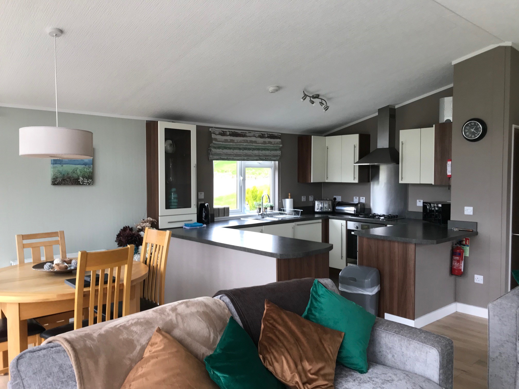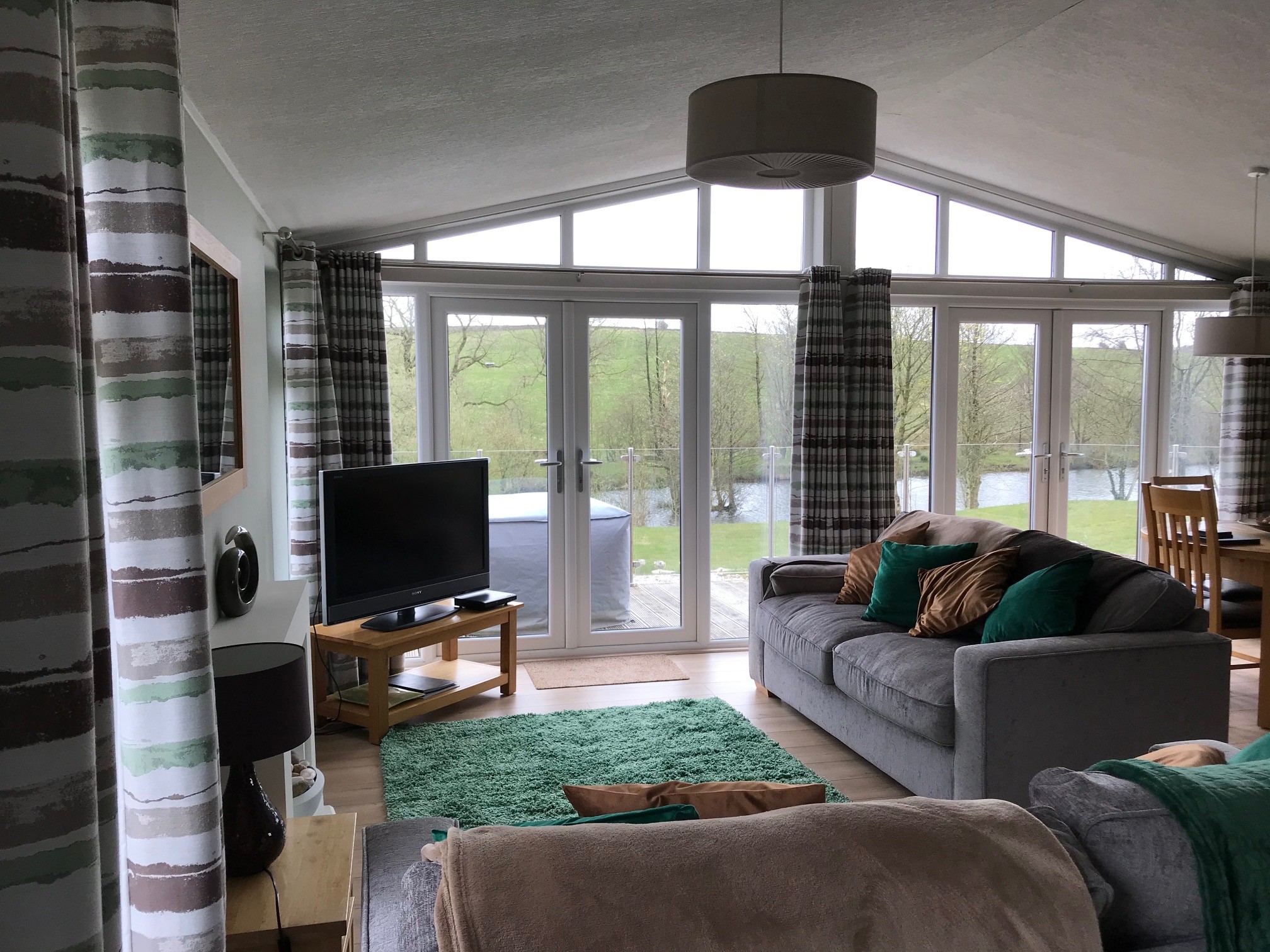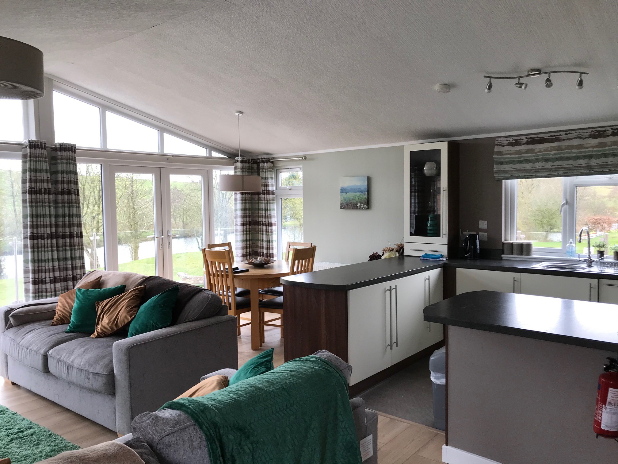 Large beautifully furnished, two bedroom lodge with open plan kitchen/dining/lounge area. Full glass front to lodge offers beautiful views of the lake. PLEASE NOTE WE DO NOT ALLOW PETS IN THE LODGE